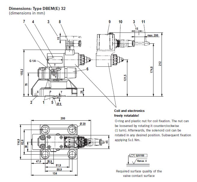 3, custom attributes: DBE / DBEM type valve is a pilot-operated proportional relief valve of the cone valve structure, the pressure of the system is steplessly adjusted according to the input signal.